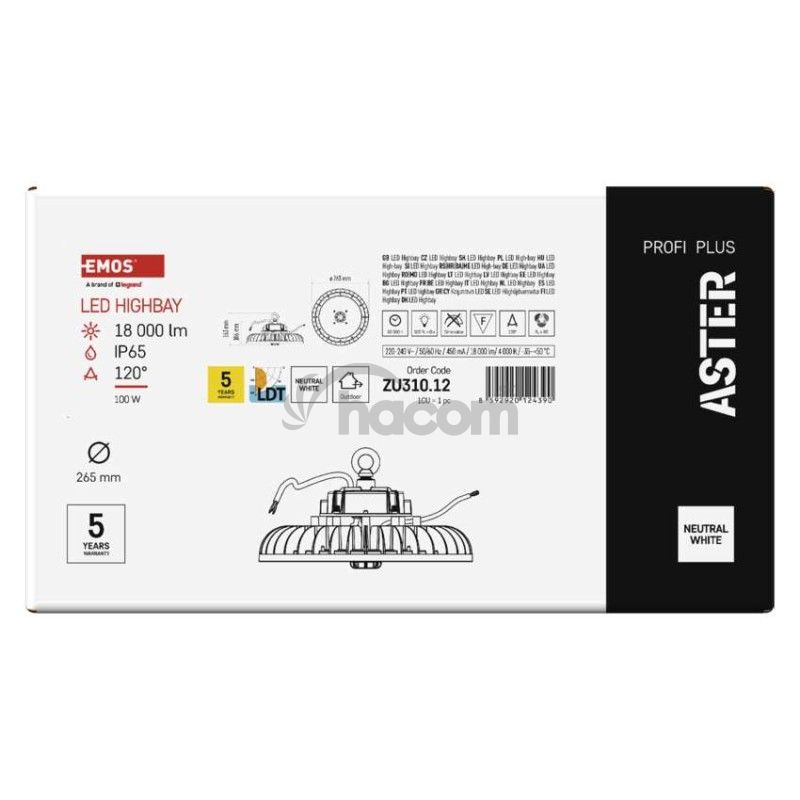 - LED priemyselné závesné svietidlo HIGHBAY ASTER 120° 100W ZU310.12