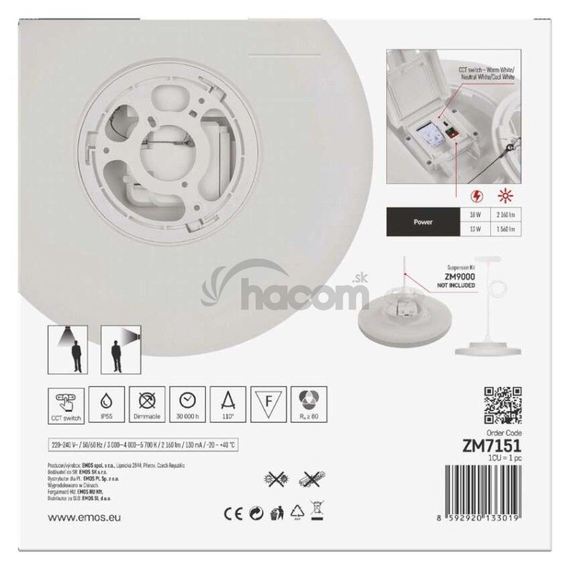 - LED prisadené svietidlo DIONI, kruhové, biele, 18W, CCT ZM7151