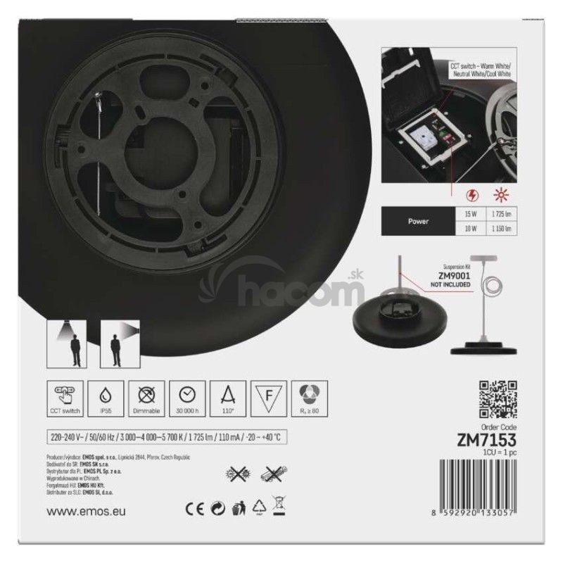 - LED prisadené svietidlo DIONI kruhové, čierné,15W, CCT ZM7153
