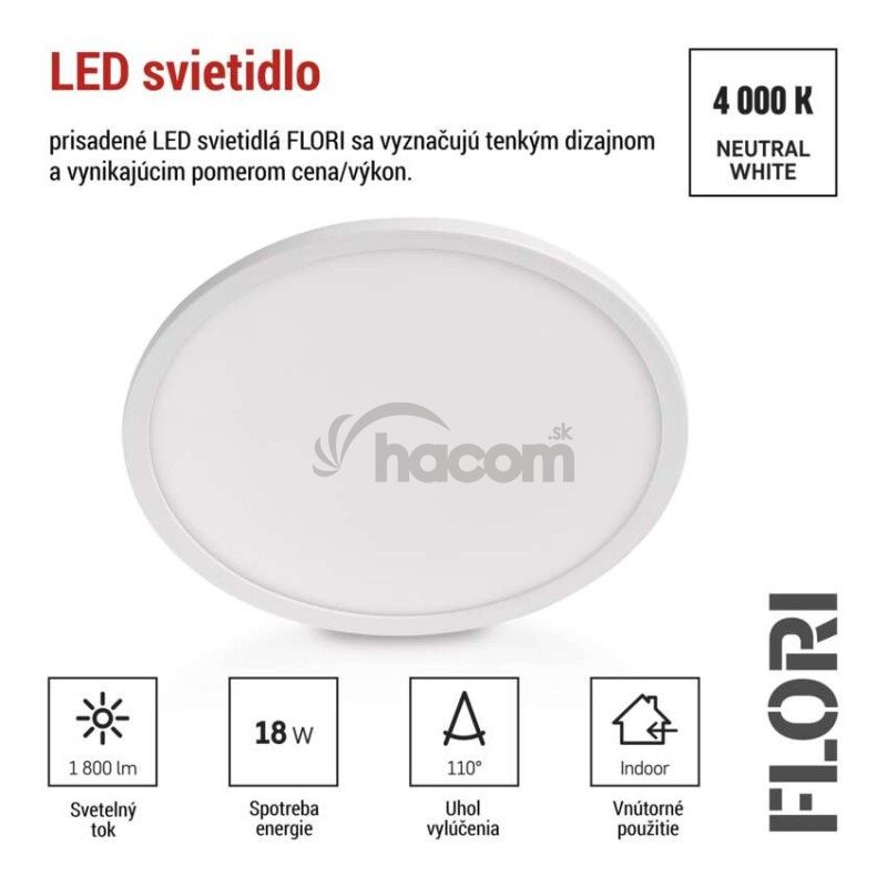 - LED prisadené svietidlo FLORI okrúhle, biele, 18W, neutrálna biela ZM1400
