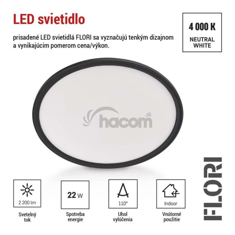 - LED prisadené svietidlo FLORI okrúhle, čierné, 22W, neutrálna biela ZM1405