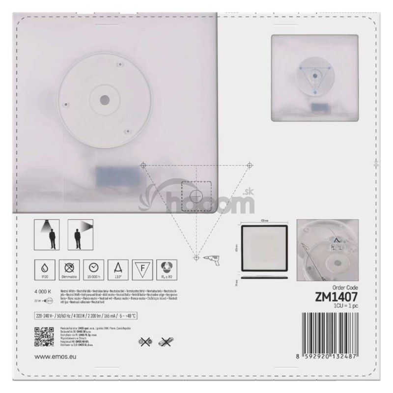 - LED prisadené svietidlo FLORI štvorcový, čierné, 22W, neutrálna biela ZM1407