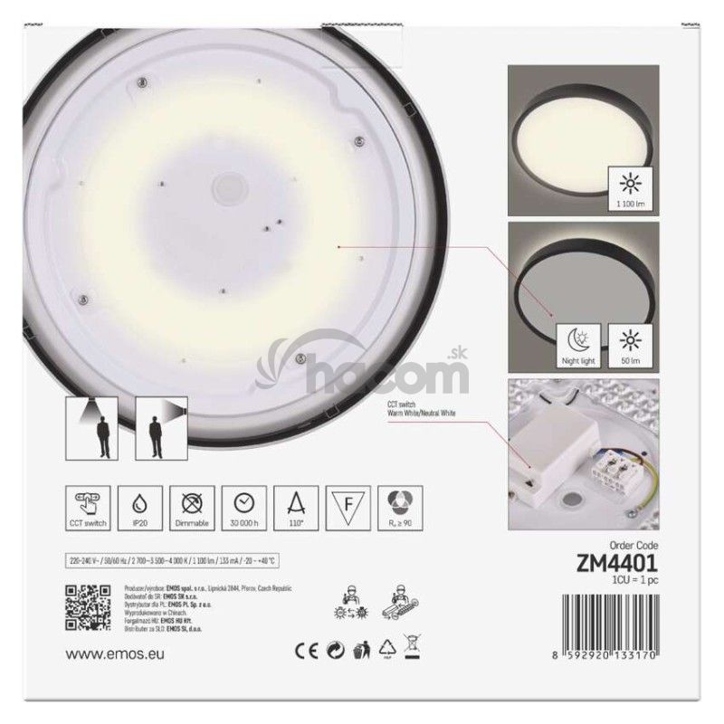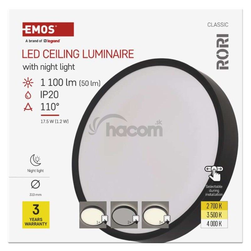 - LED prisadené svietidlo RORI kruhové, čierné,17W, CCT ZM4401