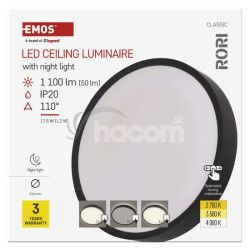 LED prisadené svietidlo RORI kruhové, čierné,17W, CCT ZM4401