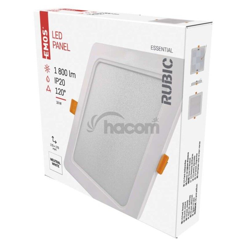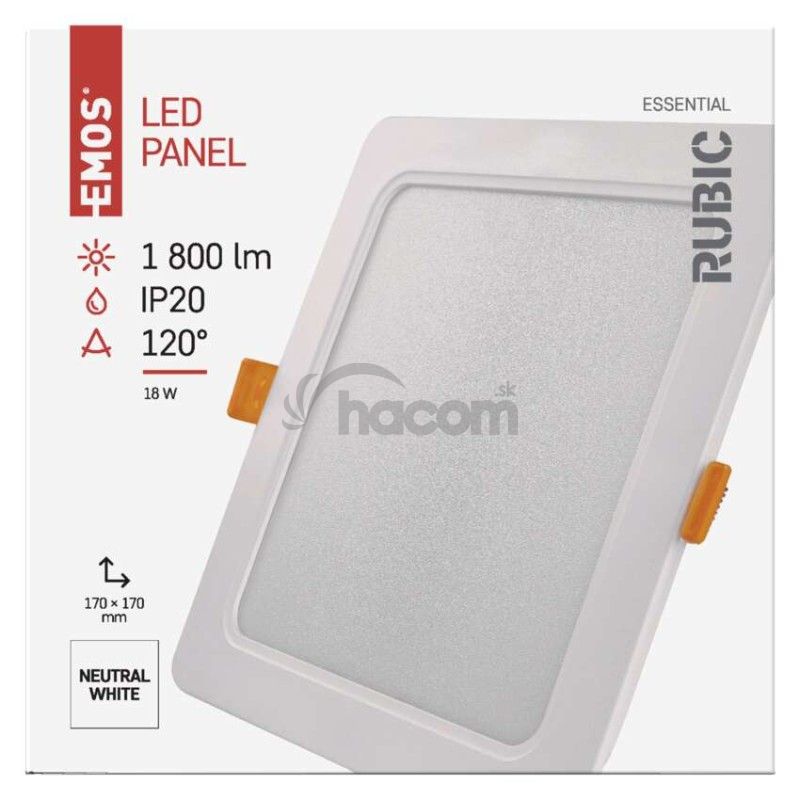 - LED prisadené svietidlo RUBIC, štvorcové, biele, 18W, neutrálna biela ZD2442