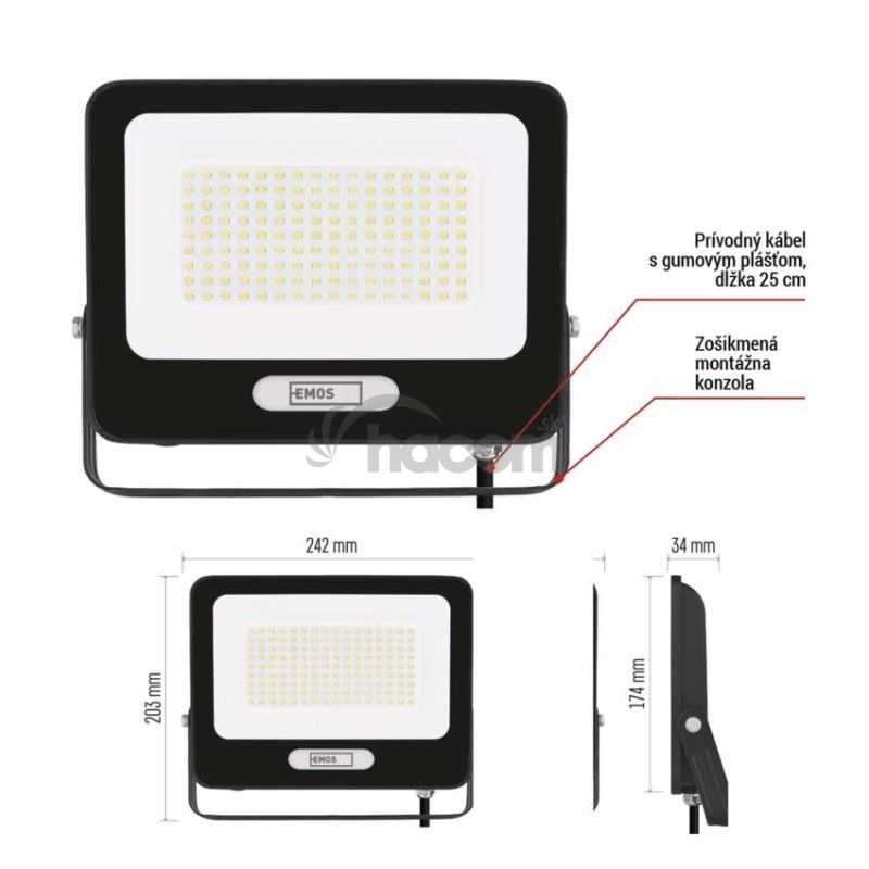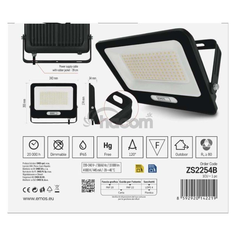 LED reflektor GLARO 100W, čierny, IP65, 10000 lm, neutrálna biela ZS2254B