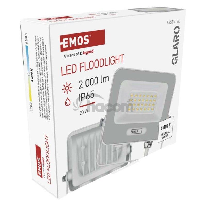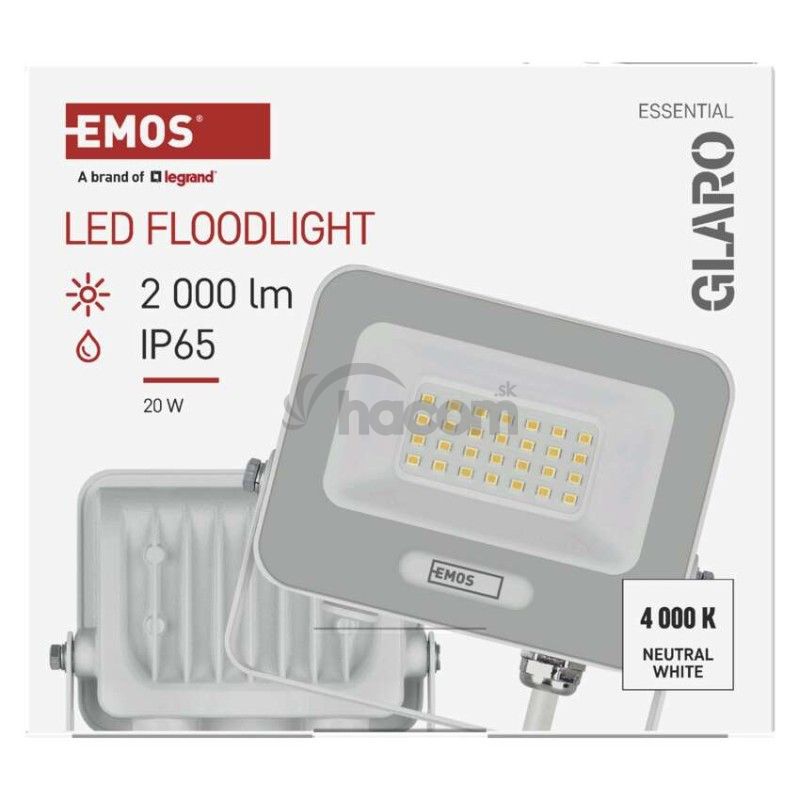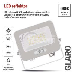 LED reflektor GLARO 20W, biely, IP65, 2000 lm, neutrálna biela ZS2224W