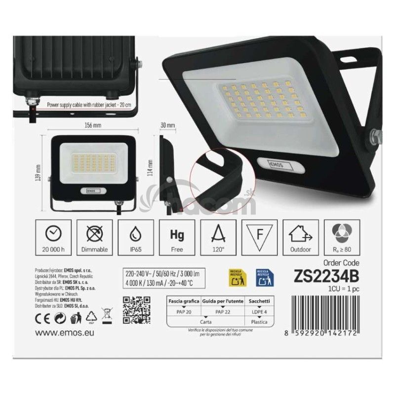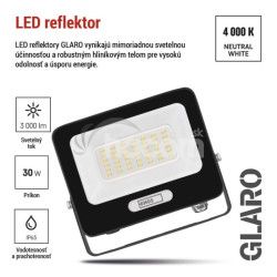 LED reflektor GLARO 30W, čierny, IP65, 3000 lm, neutrálna biela ZS2234B