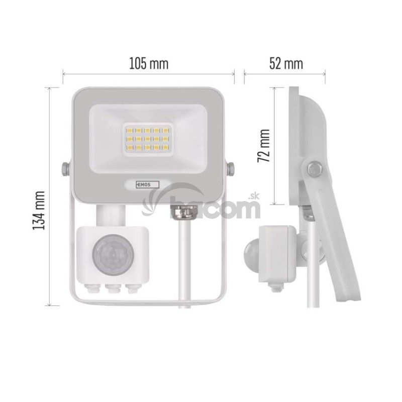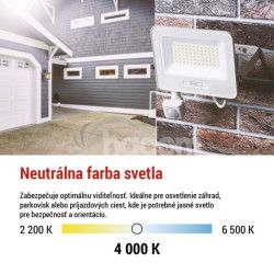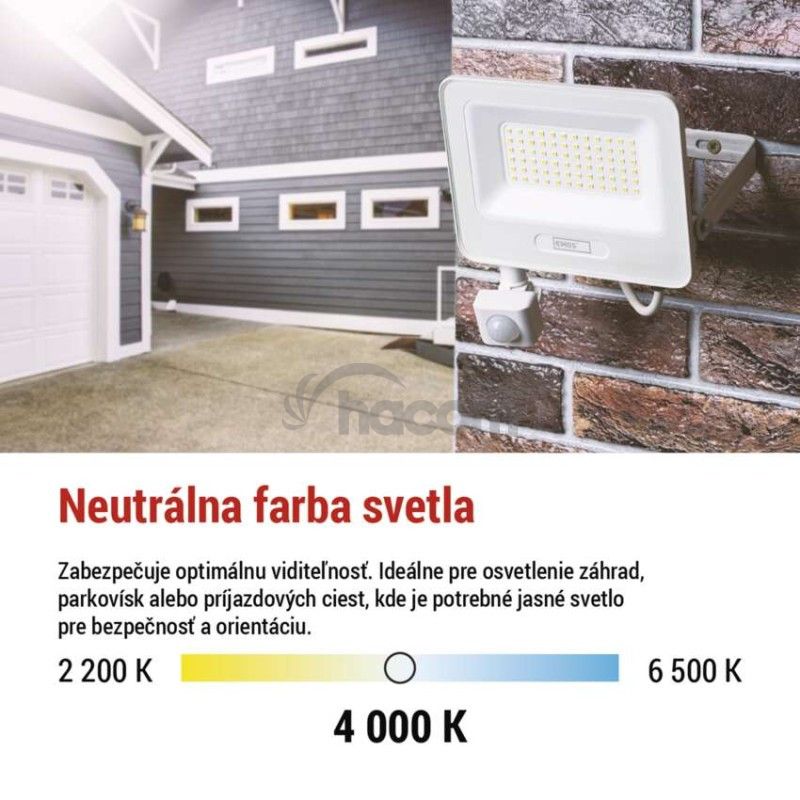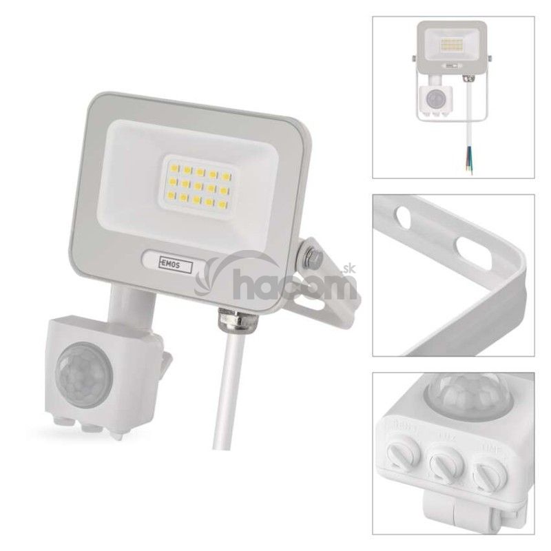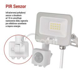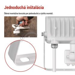 - LED reflektor GLARO s pohybovým čidlom, 10 W, biely, IP54, 1000 lm, neutrálna biela ZS2314W