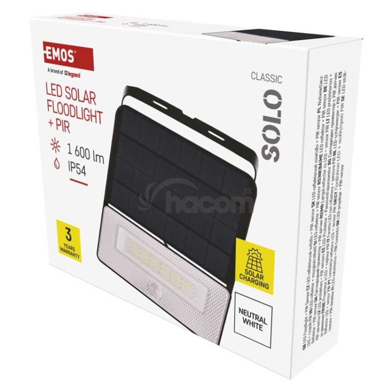 LED reflektor solárny SOLO so senzorom pohybu, neutrálna biela ZG122S
