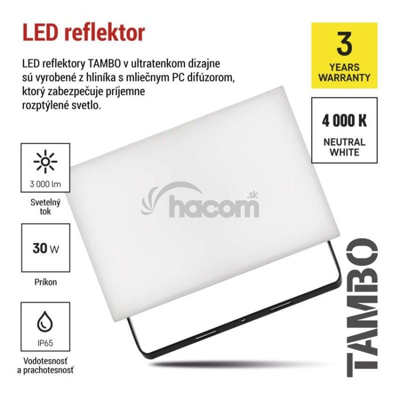- LED reflektor TAMBO, 30 W, 3000 lm, IP65, čierny ZS2532