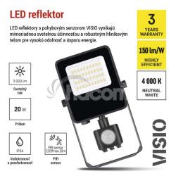 LED reflektor VISIO s pohybovým čidlom, 20 W, neutrálna biela, čierný ZS2923