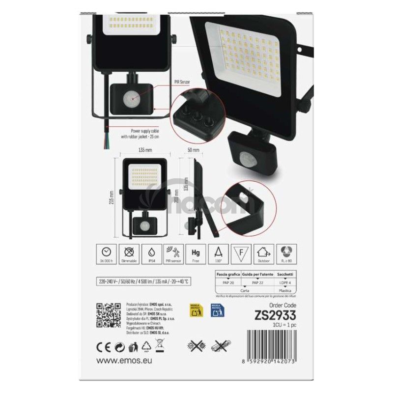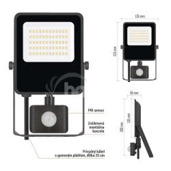 LED reflektor VISIO s pohybovým čidlom, 30 W, neutrálna biela, čierný ZS2933