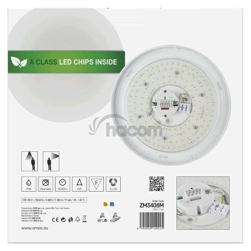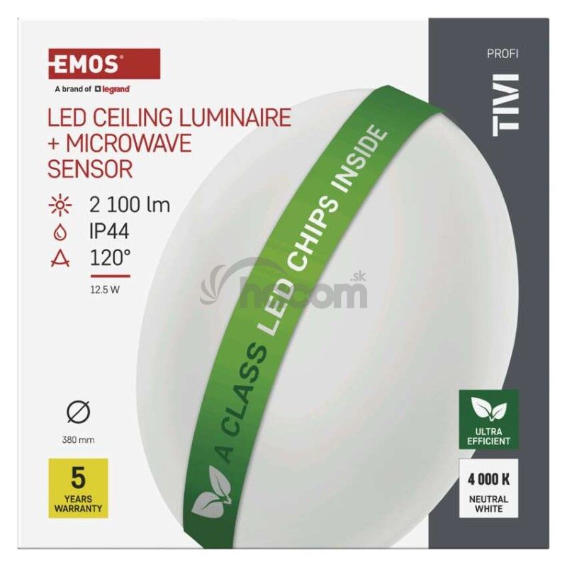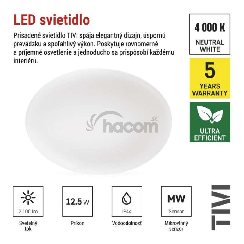 - LED stropné svietidlo TIVI, A CLASS, MW sensor, okrúhle biele 12,5W, IP44, Neutrálna biela ZM3408M