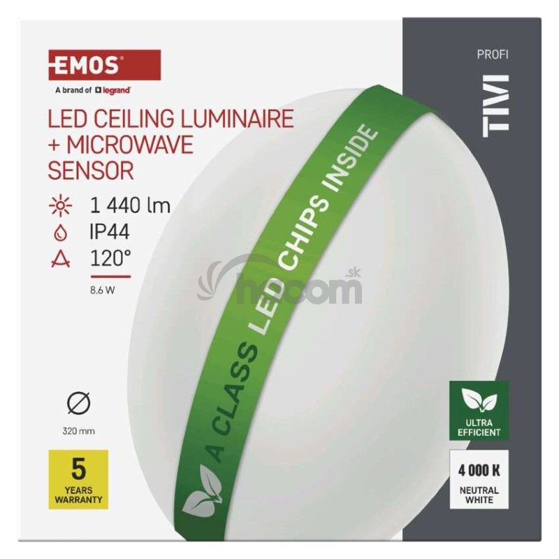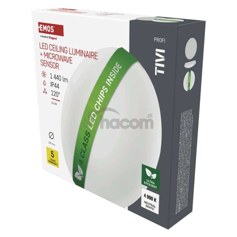 - LED stropné svietidlo TIVI, A CLASS, MW sensor, okrúhle biele 8,6W, IP44, Neutrálna biela ZM3406M
