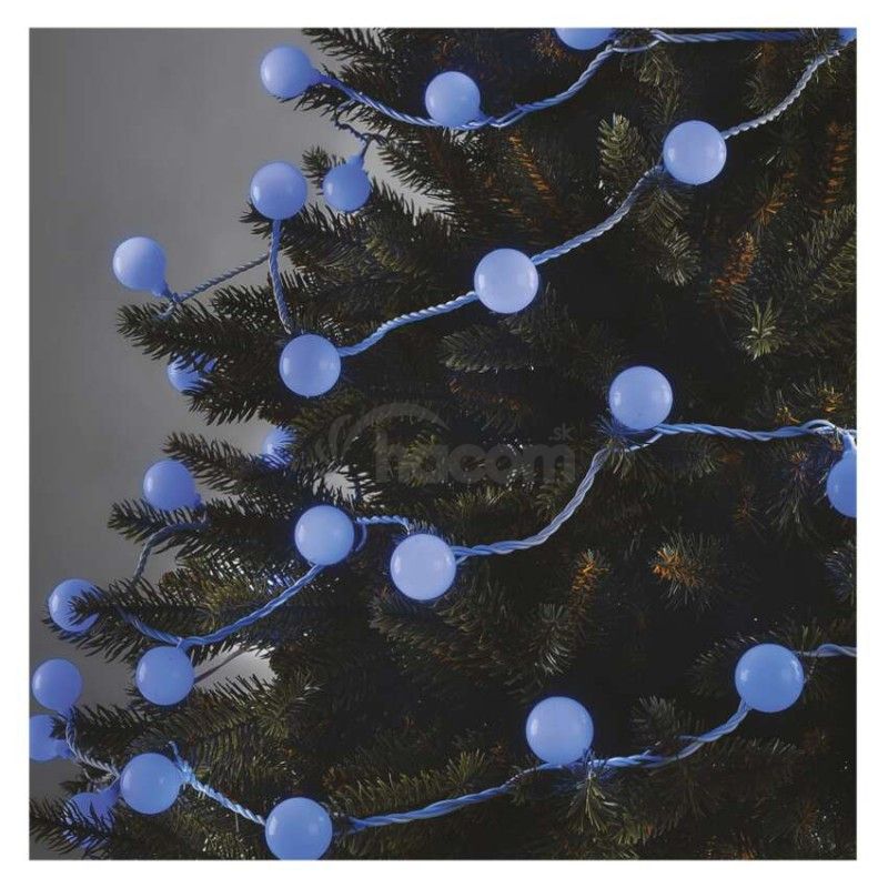 - LED svetelná cherry reťaz – guličky 2,5 cm, 4 m, vonkajšia aj vnútorná, modrá, časovač D5AB01