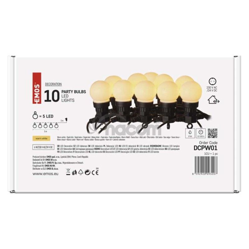 - LED svetelná reťaz – 10x párty žiarovky mliečne, 5 m, vonkajšia aj vnútorná, teplá biela DCPW01