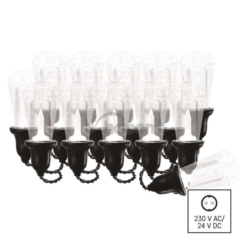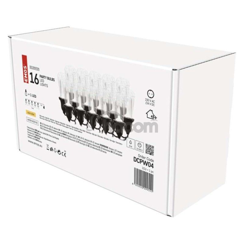 - LED svetelná reťaz – 16x párty žiarovky číre, 7,6 m, vonkajšia aj vnútorná, teplá biela DCPW04