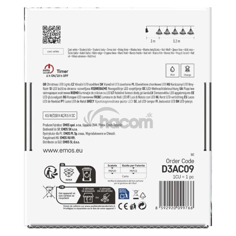 LED svetelná reťaz – svietiace trsy, nano, 5,2 m, vnút., studená biela, časovač D3AC09
