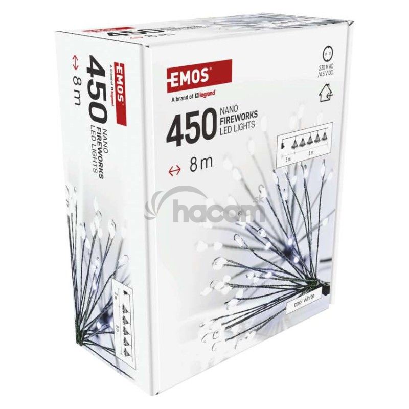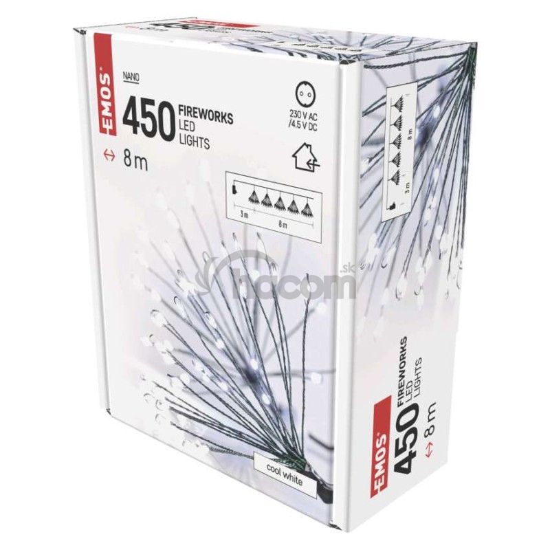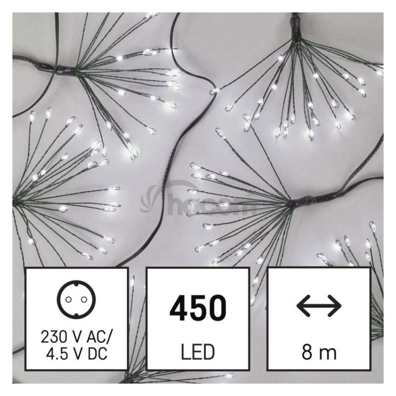 - LED svetelná reťaz – svietiace trsy, nano, 8 m, vnútorná, studená biela, časovač D3AC10