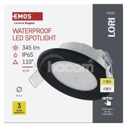 LED SVIETIDLO LORI VST. KR 4,5W 345LM IP65 CCT čierná ZV1164