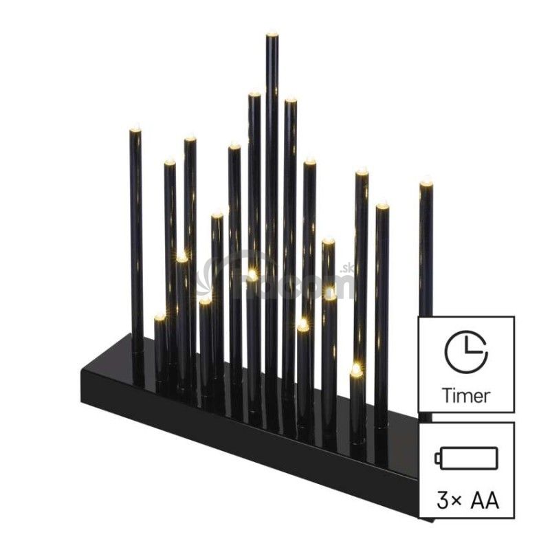 - LED svietnik čierny, 27,5 cm, 3x AA, vnútorný, teplá biela, časovač DCAW04