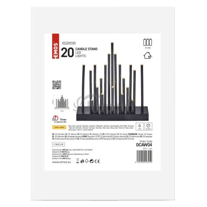 LED svietnik čierny, 27,5 cm, 3x AA, vnútorný, teplá biela, časovač DCAW04
