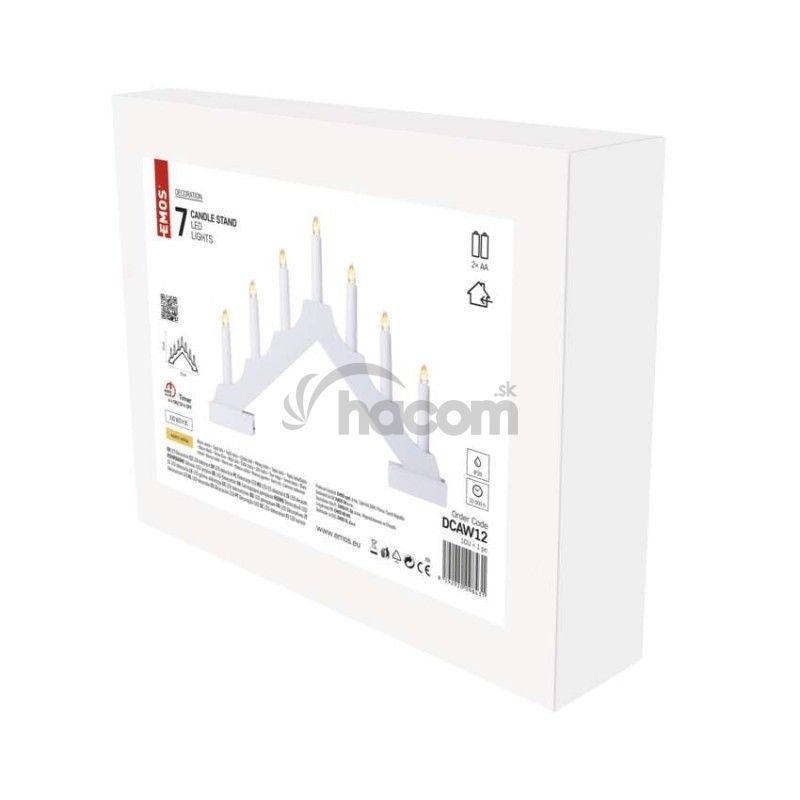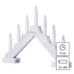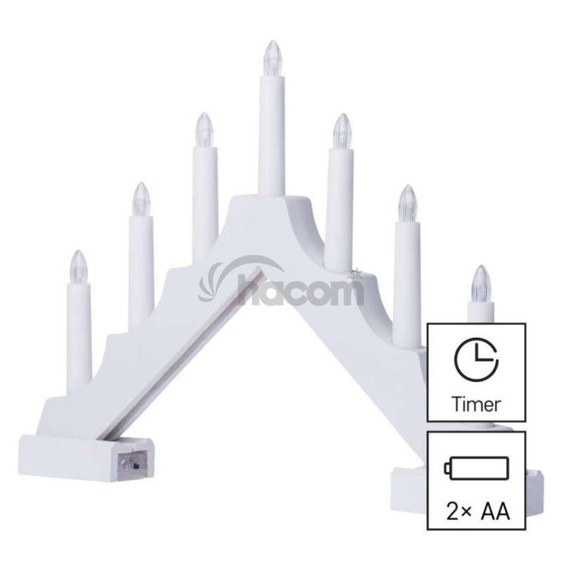 LED svietnik drevený biely, 29 cm, 2x AA, vnútorný, teplá biela, časovač DCAW12