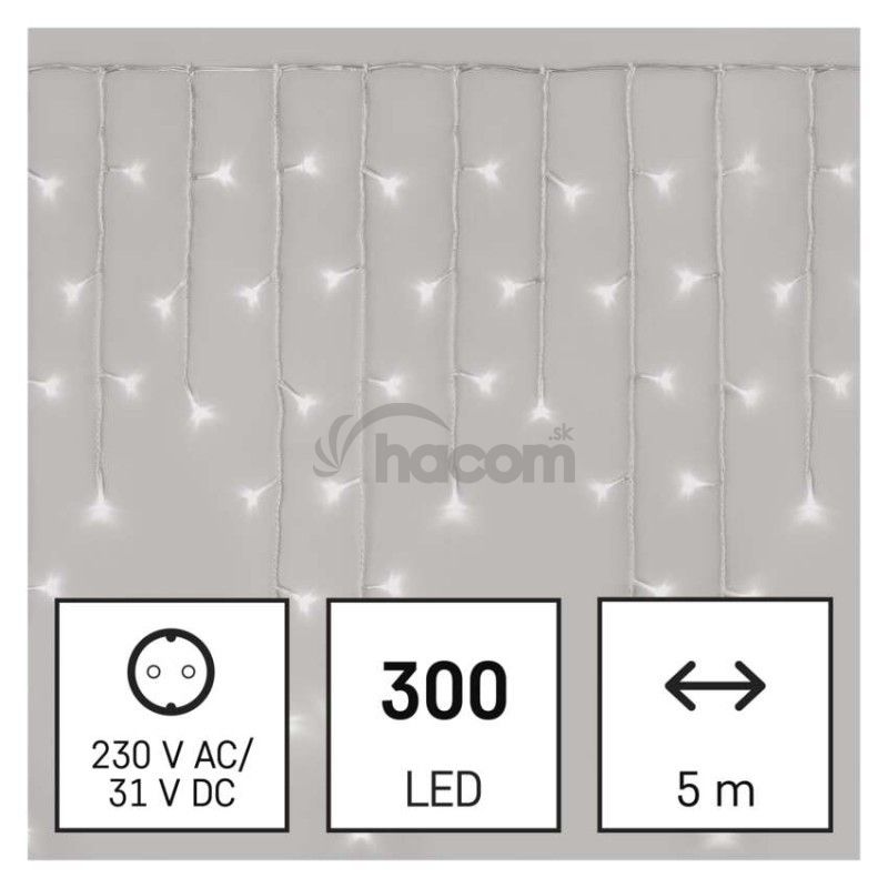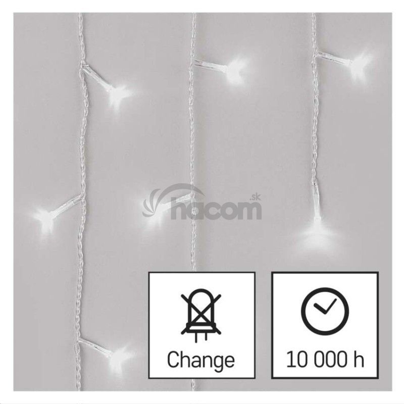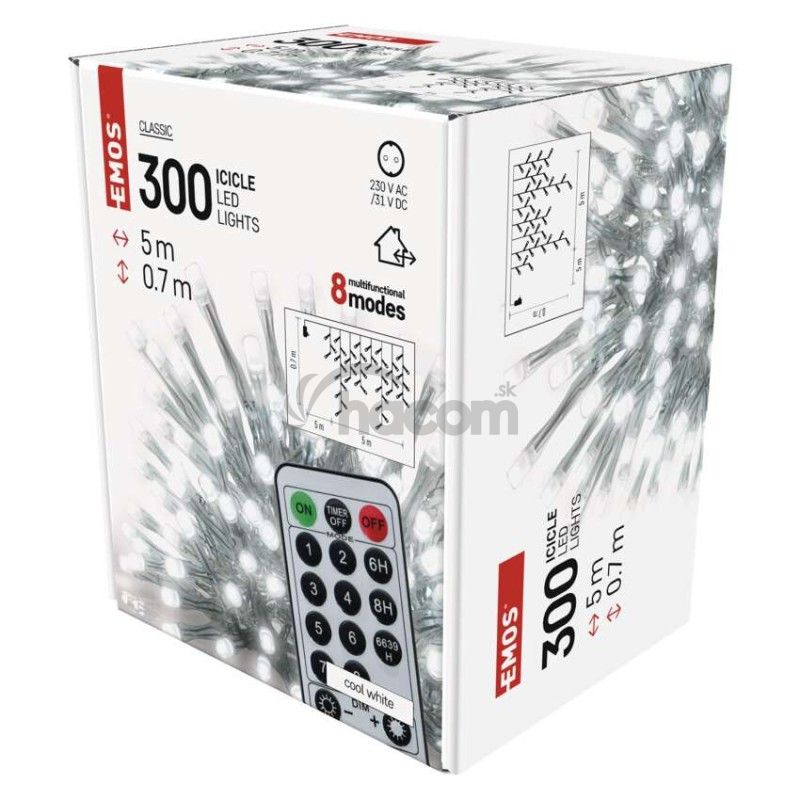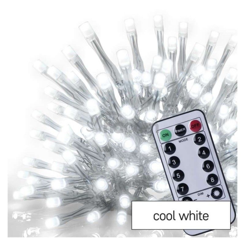 LED vianoč. cencúle, 5 m, vonkajšie aj vnútor., studená biela, ovládač, programy, časovač D4CC02