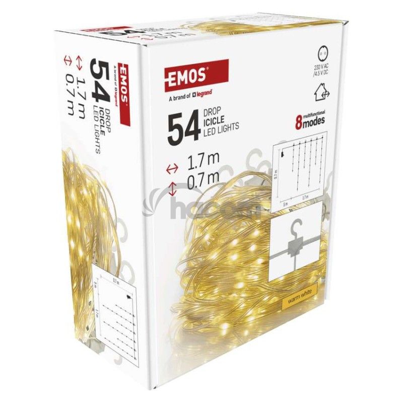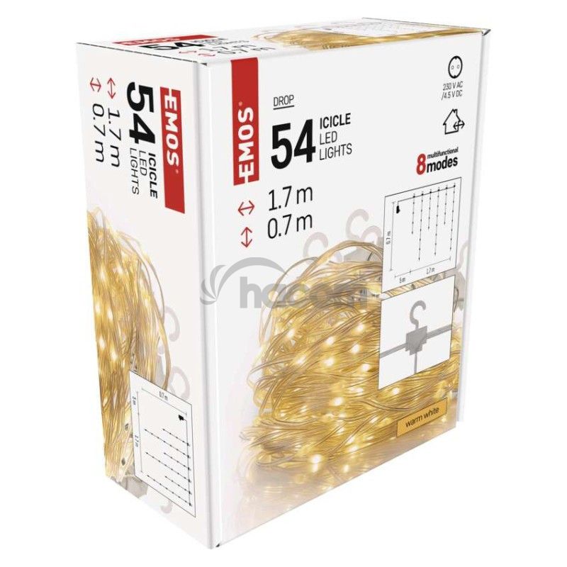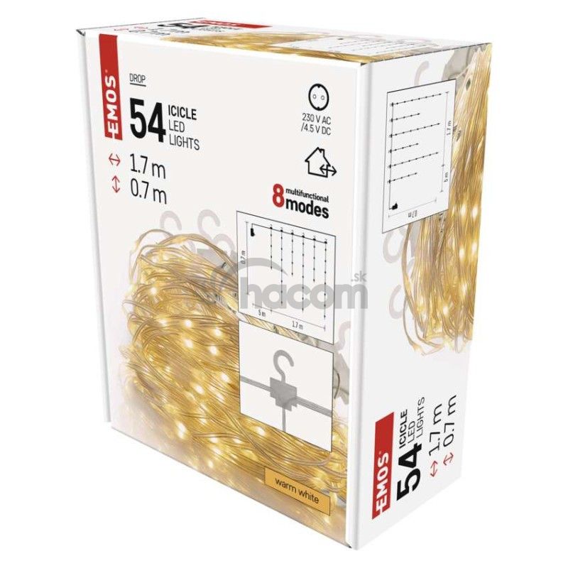 - LED vianočná drop reťaz – cencúle, 1,7 m, vonkajšia aj vnútorná, teplá biela, programy D3CW01