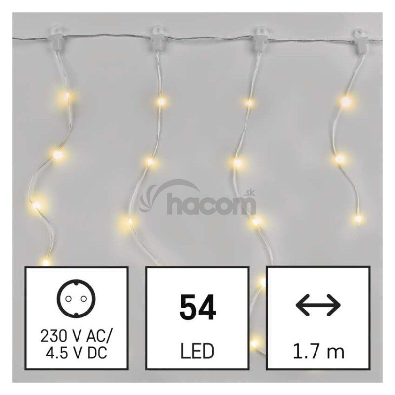 LED vianočná drop reťaz – cencúle, 1,7 m, vonkajšia aj vnútorná, teplá biela, programy D3CW01