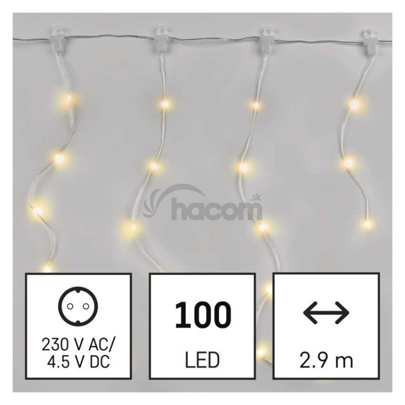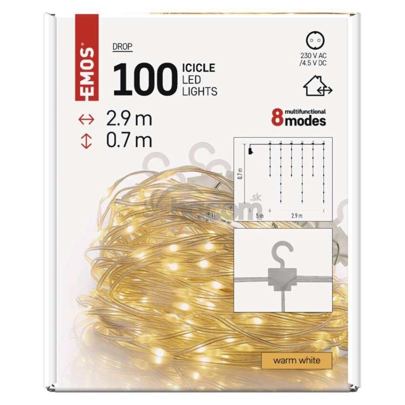 LED vianočná drop reťaz – cencúle, 2,9 m, vonkajšia aj vnútorná, teplá biela, programy D3CW02