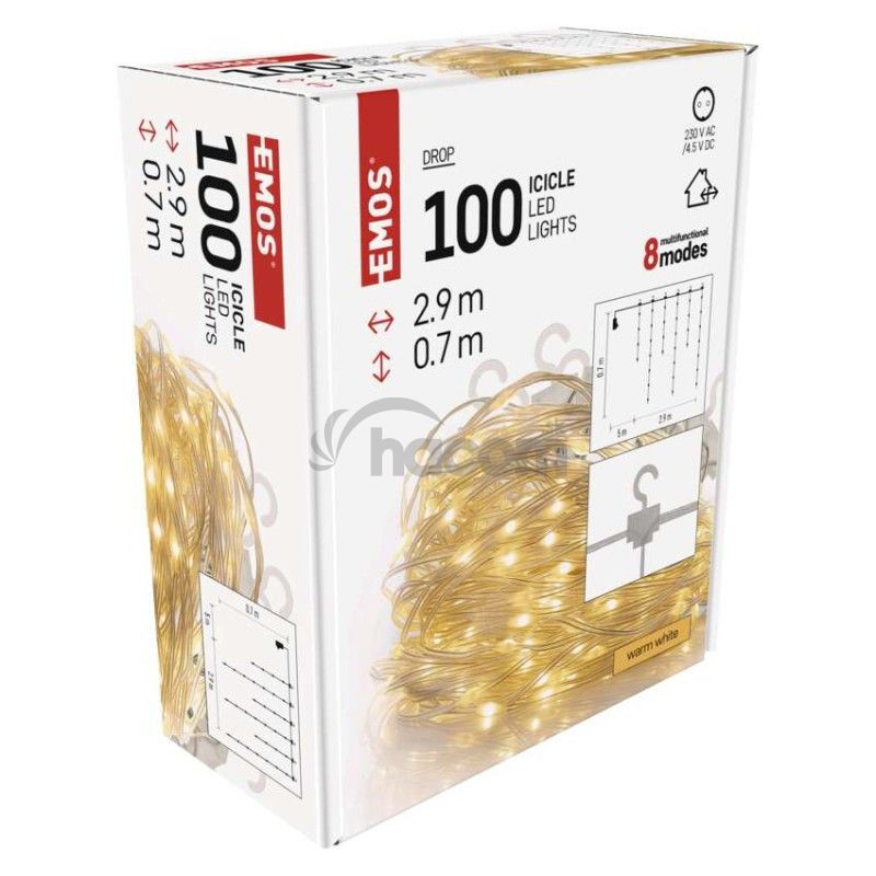 - LED vianočná drop reťaz – cencúle, 2,9 m, vonkajšia aj vnútorná, teplá biela, programy D3CW02