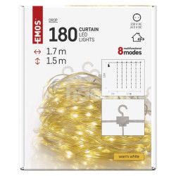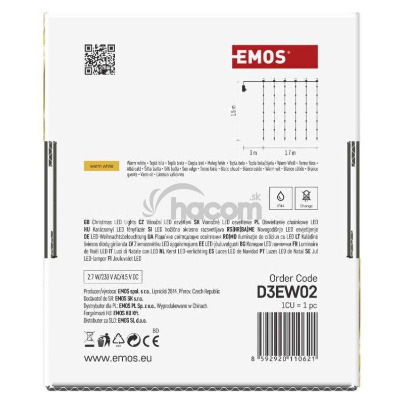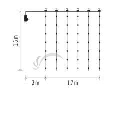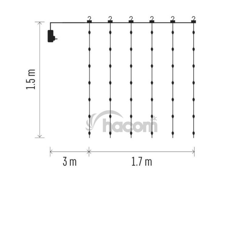 - LED vianočná drop reťaz – záclona, 1,7x1,5 m, vonkajšia aj vnútorná, teplá biela, programy D3EW02