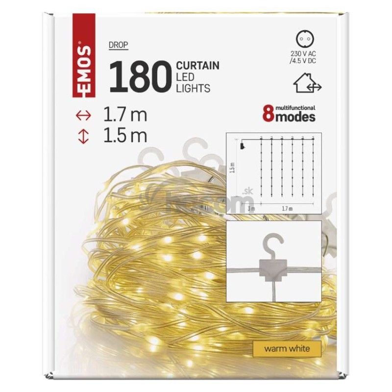LED vianočná drop reťaz – záclona, 1,7x1,5 m, vonkajšia aj vnútorná, teplá biela, programy D3EW02