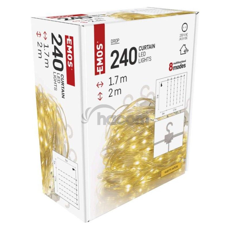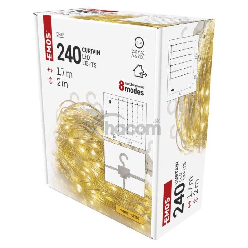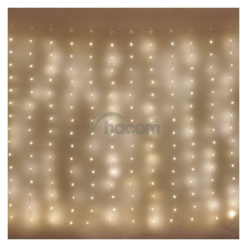 - LED vianočná drop reťaz – záclona, 1,7x2 m, vonkajšia aj vnútorná, teplá biela, programy D3EW01