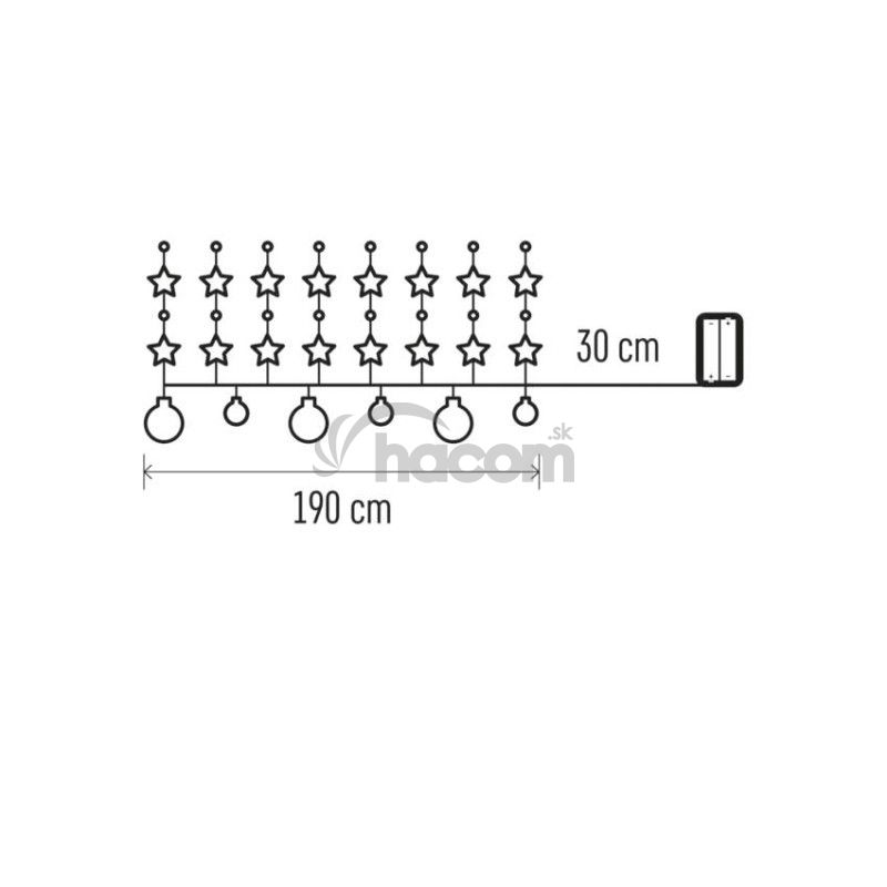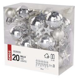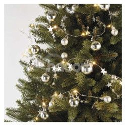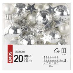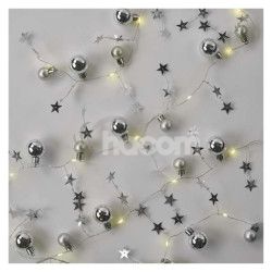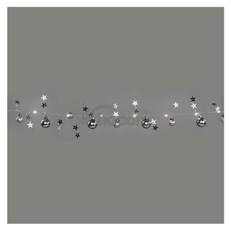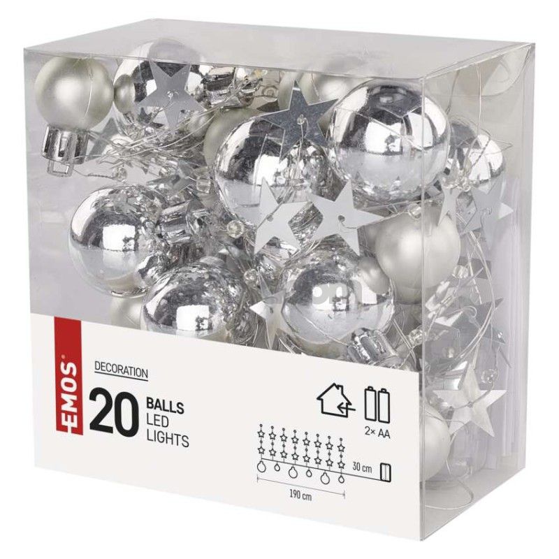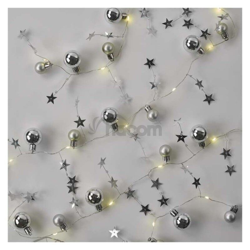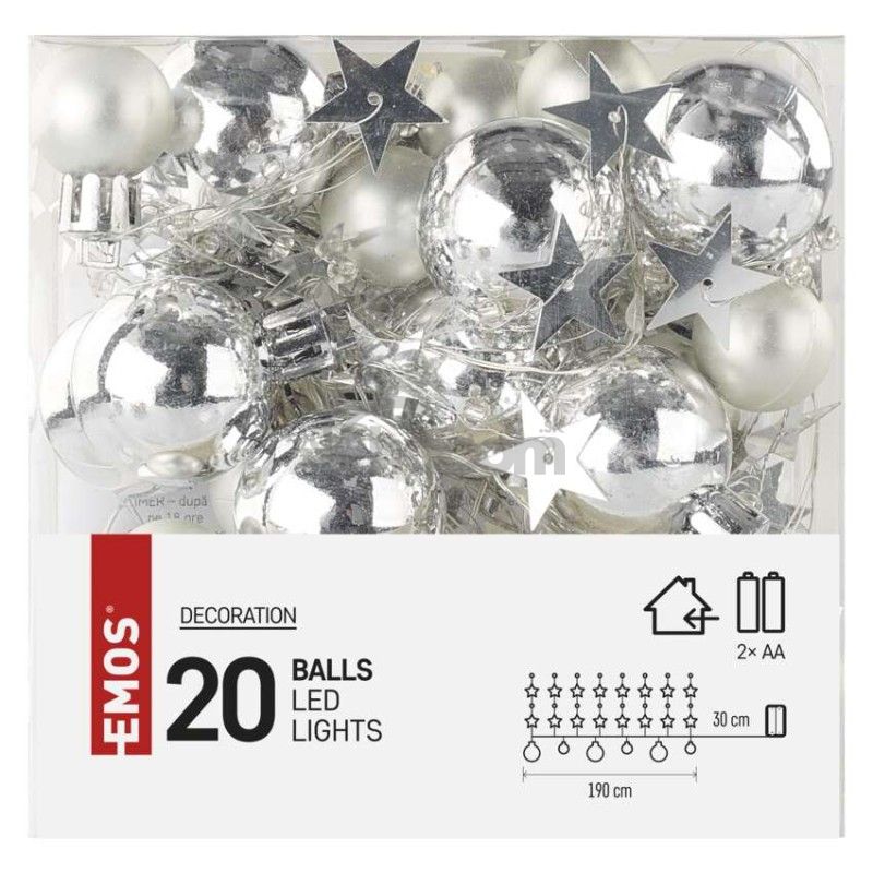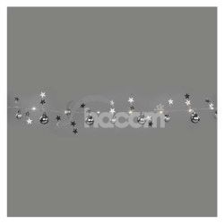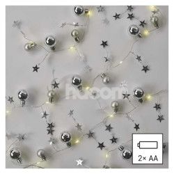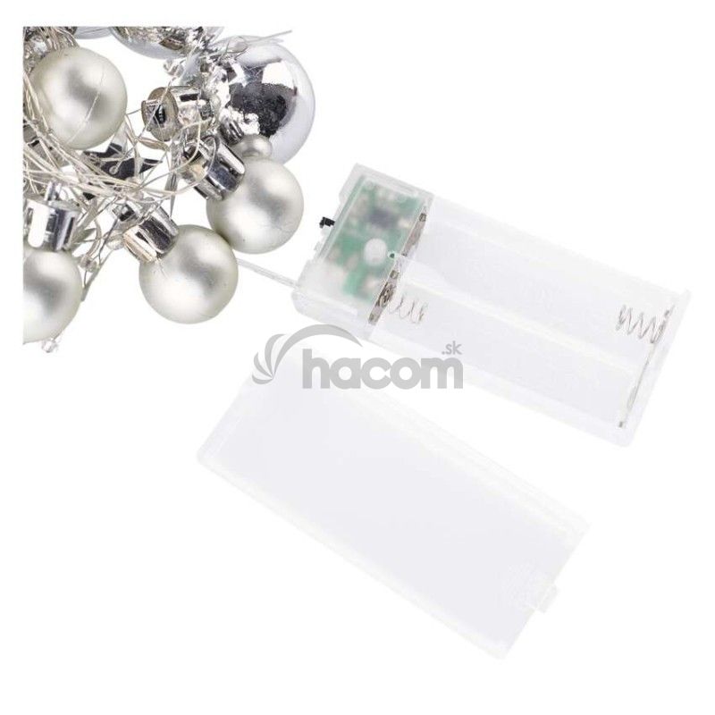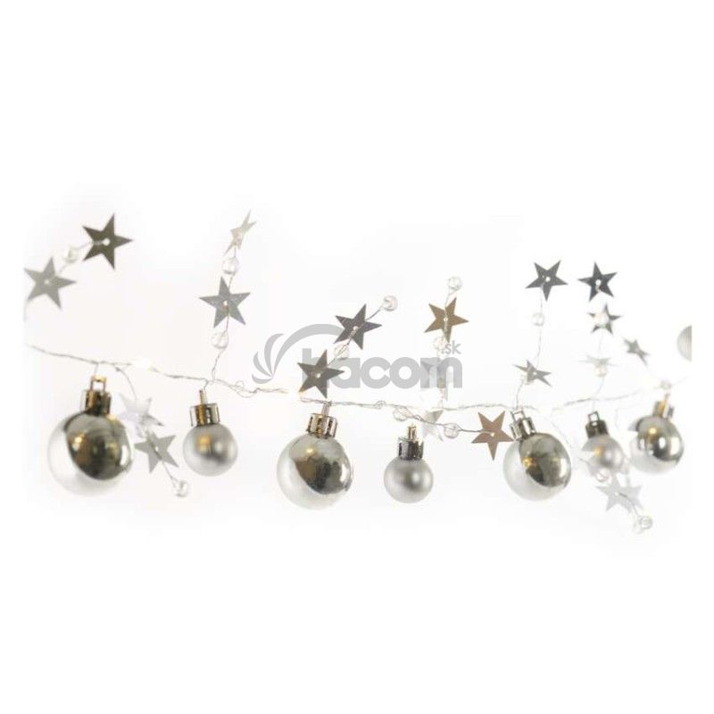 - LED vianočná girlanda – strieborné guličky, 1,9 m, 2x AA, vnútorný, teplá biela, časovač DCGW10