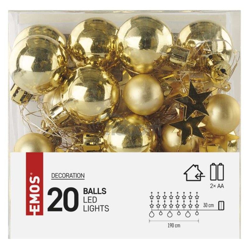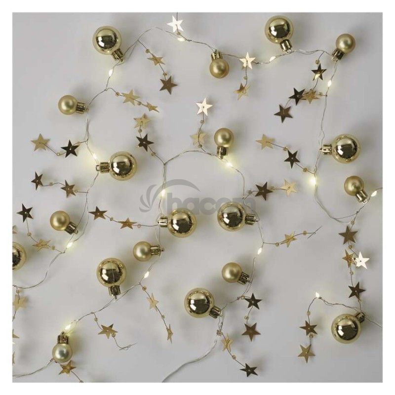 - LED vianočná girlanda – zlaté guličky, 1,9 m, 2x AA, vnútorný, teplá biela, časovač DCGW11