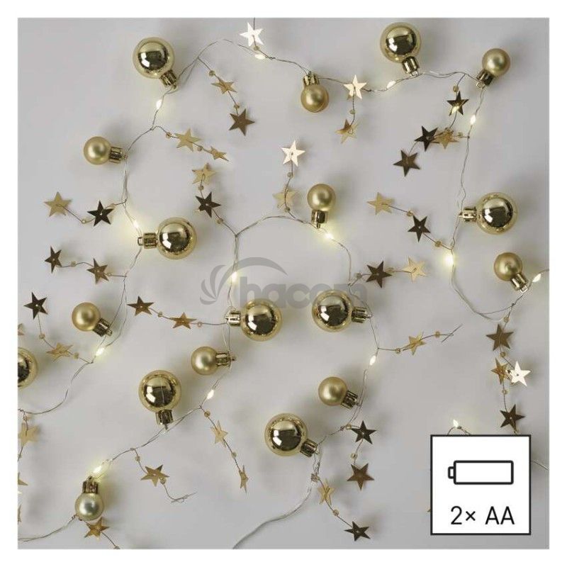 LED vianočná girlanda – zlaté guličky, 1,9 m, 2x AA, vnútorný, teplá biela, časovač DCGW11