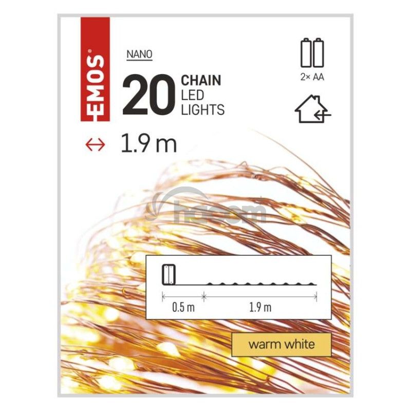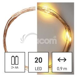 - LED vianočná nano reťaz, 1,9 m, 2x AA, vnútorná, teplá biela, časovač D3AW07