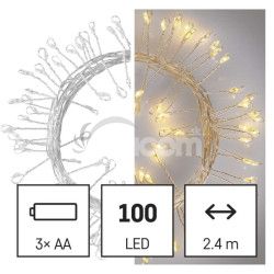 LED vianočná nano reťaz – ježko, 2,4 m, 3x AA, vnútorná, teplá biela, časovač D3FW01