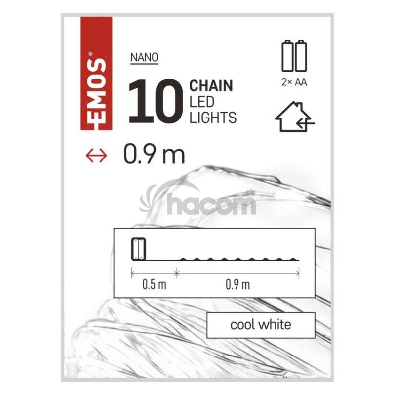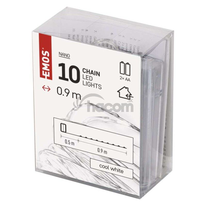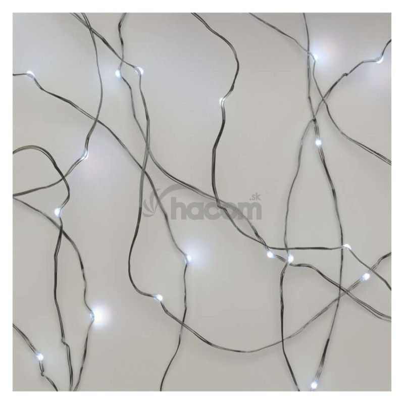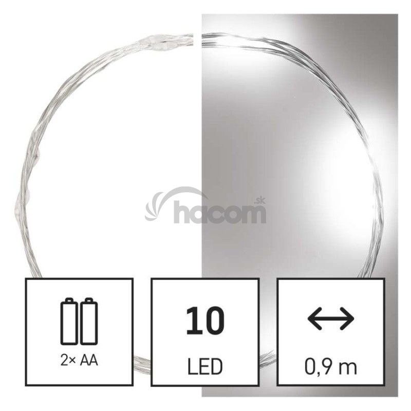 - LED vianočná nano reťaz strieborná, 0,9 m, 2x AA, vnútorná, studená biela, časovač D3AC06