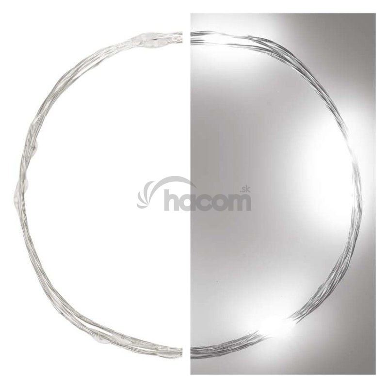 LED vianočná nano reťaz strieborná, 0,9 m, 2x AA, vnútorná, studená biela, časovač D3AC06