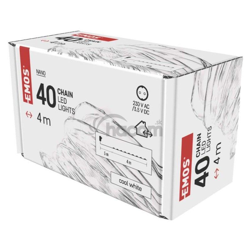 - LED vianočná nano reťaz strieborná, 4 m, vonkajšia aj vnútorná, studená biela, časovač D3AC02