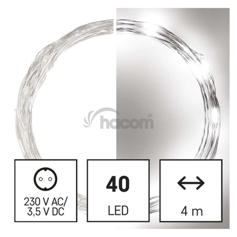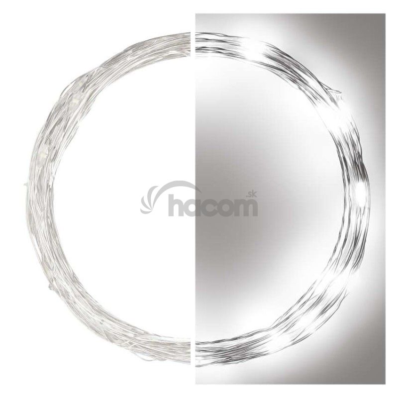 LED vianočná nano reťaz strieborná, 4 m, vonkajšia aj vnútorná, studená biela, časovač D3AC02