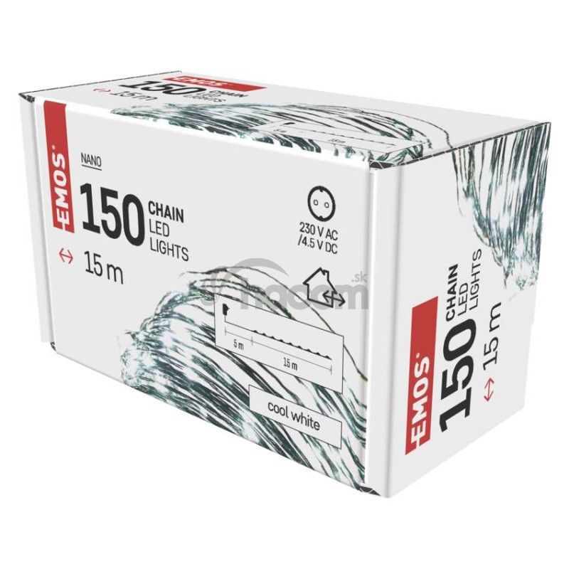 - LED vianočná nano reťaz zelená, 15 m, vonkajšia aj vnútorná, studená biela, časovač D3AC05