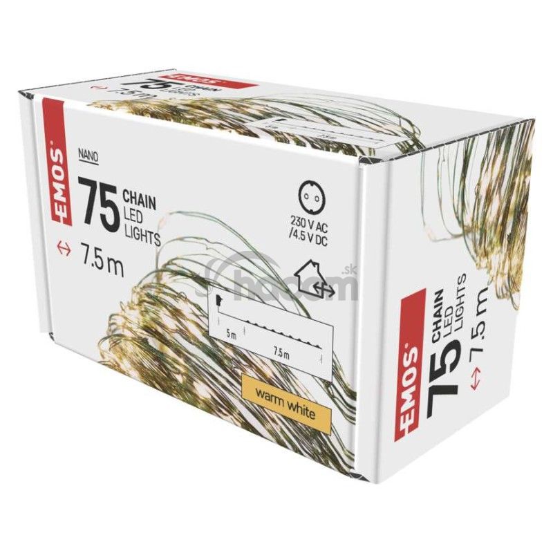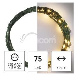 LED vianočná nano reťaz zelená, 7,5 m, vonkajšia aj vnútorná, teplá biela, časovač D3AW04