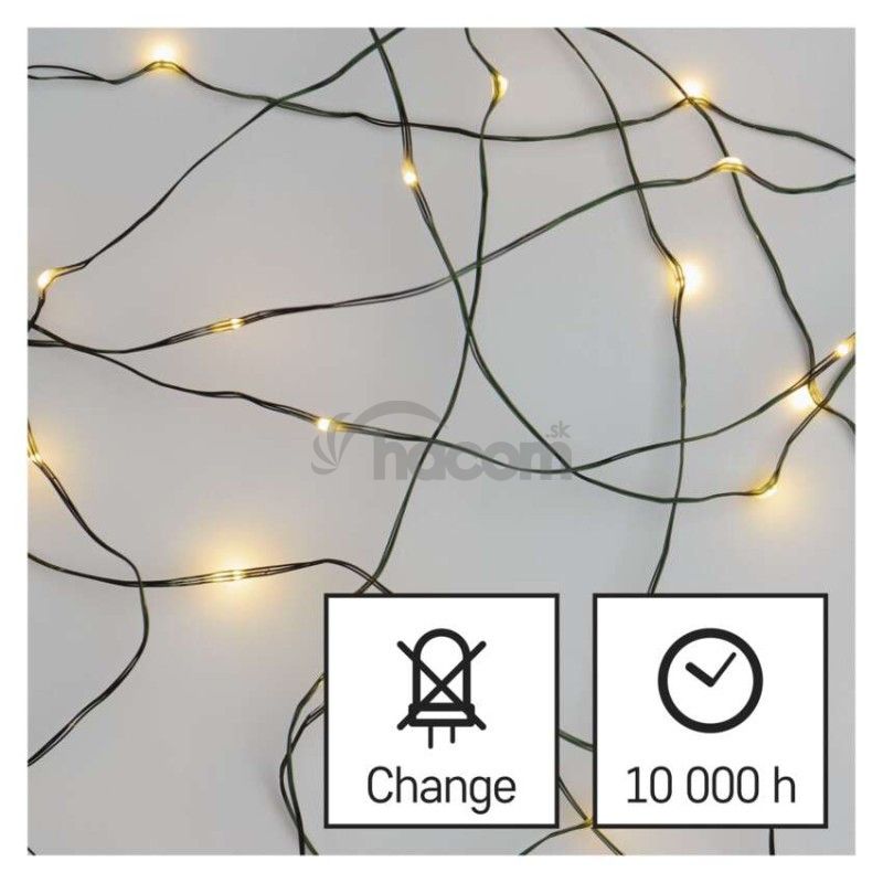 - LED vianočná nano reťaz zelená, 7,5 m, vonkajšia aj vnútorná, teplá biela, časovač D3AW04