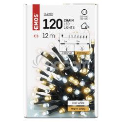 LED vianočná reťaz, 12 m, vonkajšia aj vnútorná, teplá/studená biela, časovač D4AN05