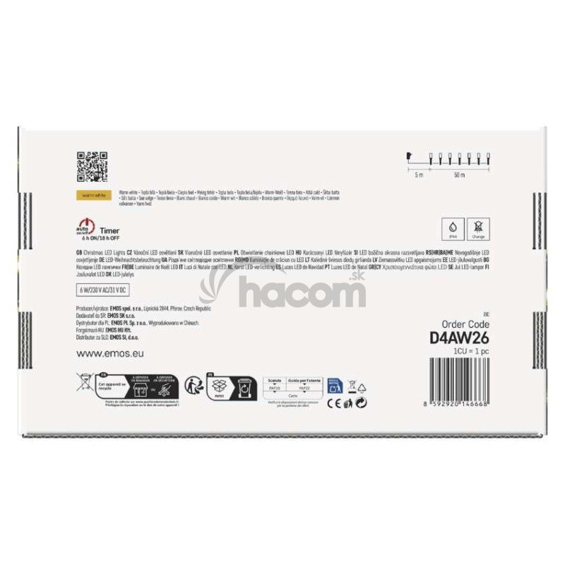 - LED vianočná reťaz, 50 m, vonkajšia aj vnútorná, teplá biela, programy, časovač D4AW26